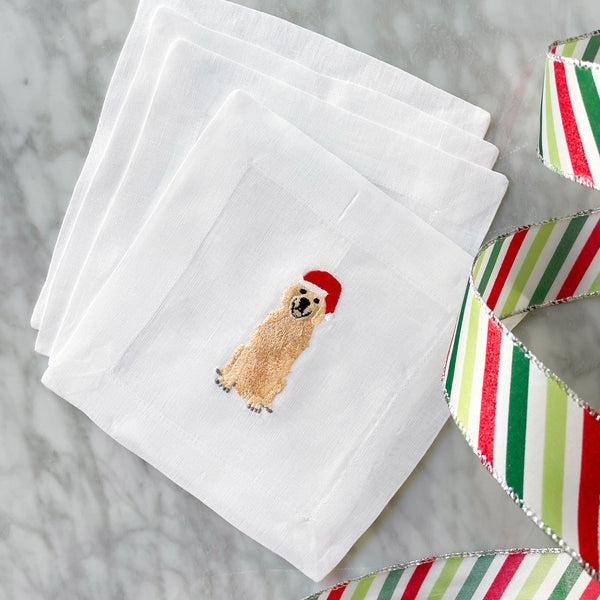 Introducing Lettermade's newest line of holiday cocktail napkins, "Santa Dogs"! Inspired by our popular "Santa Willie" cocktail napkin, the Golden Retriever donned in a festive Santa hat is a Christmas twist on our customer-favorite "Best Friend" series. This set of 4 cocktail napkins is the perfect gift for the Golden Retriever lovers in your life! Also now available is our Dachshund Santa Dog set.