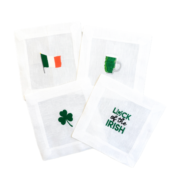 Introducing Lettermade’s newest addition to the Celebrations series: the “St. Patrick's Day” cocktail napkin set! This cheerful set of four features one of each design—four leaf clover, Irish flag, mug of green beer, and "Luck of the Irish" motif. It’s the perfect gift or festive touch for celebrating St. Patrick's Day!